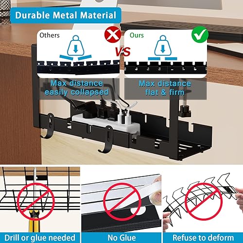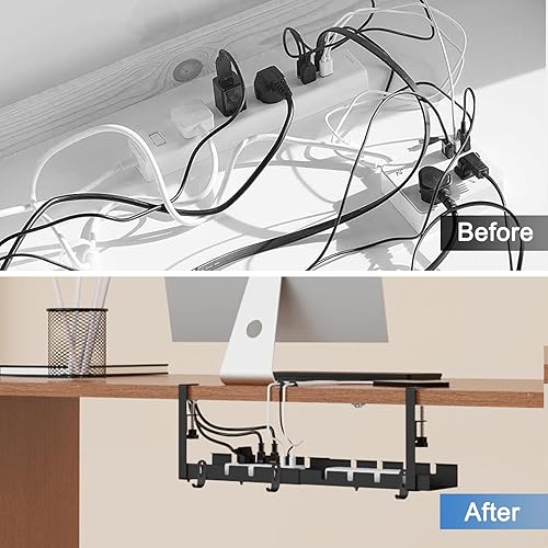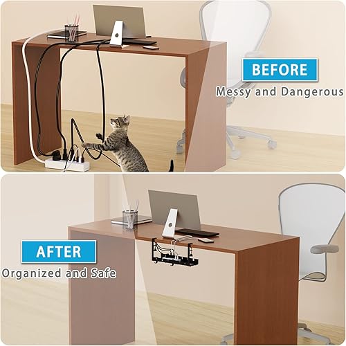 Senza Forare Raccogli Cavi Scrivania Nero, 28.5-55CM Retrattile Porta Cavi Scrivania, Cable Management Scrivania per Gestione di Cavi e Ciabatte