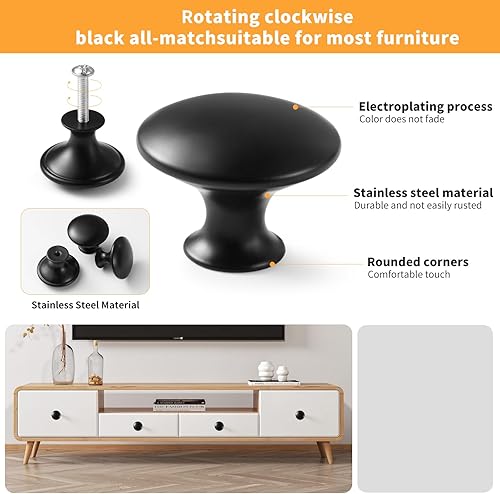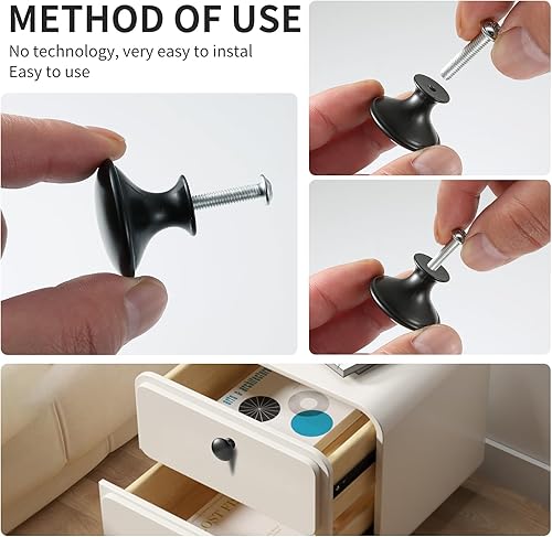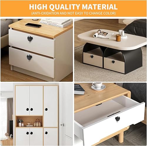 FISKUNYU Pomelli per Mobili 14 Pezzi - Pomelli Vintage Neri per Cassetti e Ante, Maniglie Rotonde da 30 mm per Mobili Cucina, Armadi, Comò, con Viti Incluse