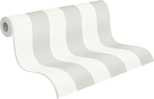 381012 38101-2 - Carta da parati a righe in tessuto non tessuto, 10,05 m x 0,53 m, colore: Grigio/Bianco