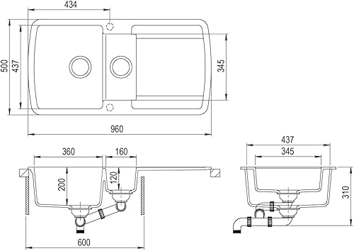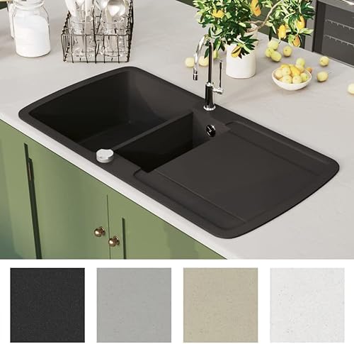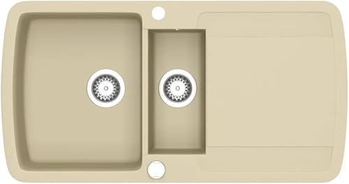 vidaXL Lavello da Cucina in Granito Naturale Stile Contemporaneo Elegante Vasca Doppia Reversibile con Filtro Lavandino Lavabo Beige