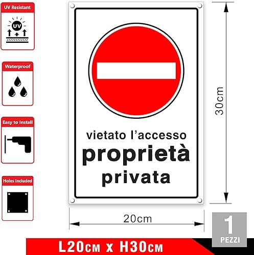 Cartello proprietà privata - Cartelli vietato l'accesso – Divieto! Non entrare! - Plastica (20x30 cm) (2 Pezzi Cartello Proprietà Privata)