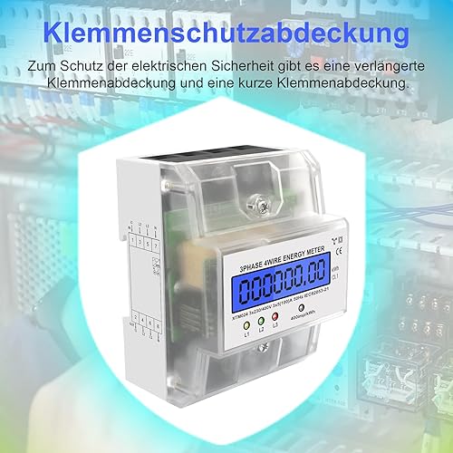 Contatore elettrico digitale LCD, contatore elettrico trifase 4 fili, contatore trifase calibrato 230 / 400V, contatore trifase top-hat rail