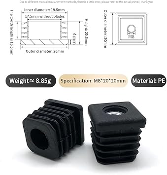 10 tappi terminali in plastica nera, 30 x 30 mm, dadi in plastica, tappi per tubi filettati M8, inserti per tubi quadrati, tappi per gambe di mobili, per tavoli, sedie, tappi per gambe di mobili