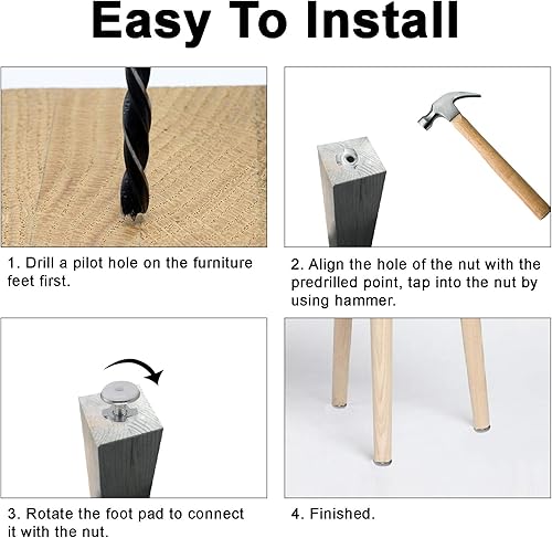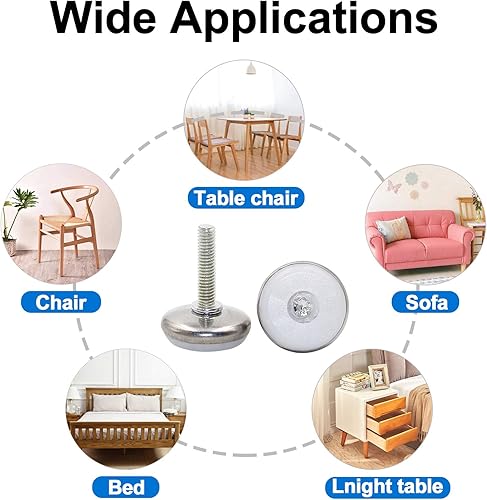 INCREWAY 20 piedini M6 per mobili con fondo bianco per tavolo e sedie, livellatori per mobili con gambo filettato, dadi a T
