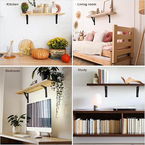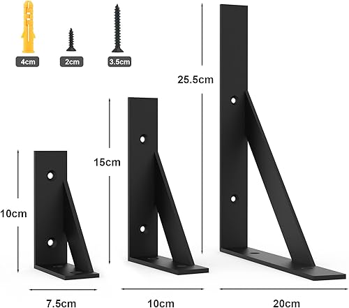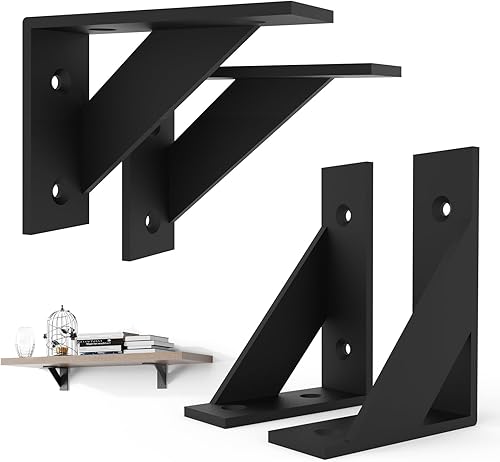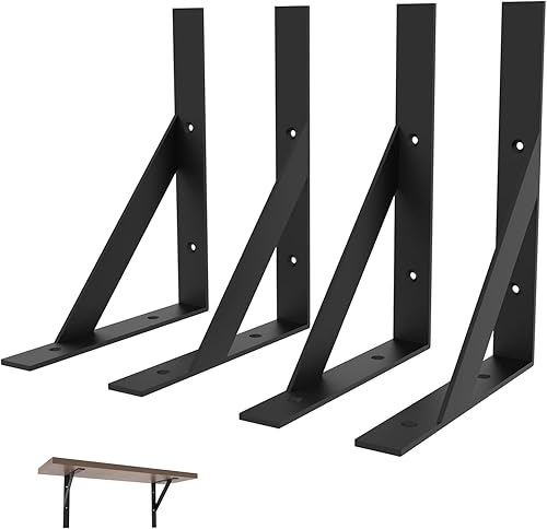 200mm x 255mm Staffe per Mensole Pesanti, Reggimensola Nero, Staffe per Mensole Staffe a L, Multifunzionale Di 90 Gradi Fai-Da-Te Reggi Mensole Da Muro 4 Pezzi