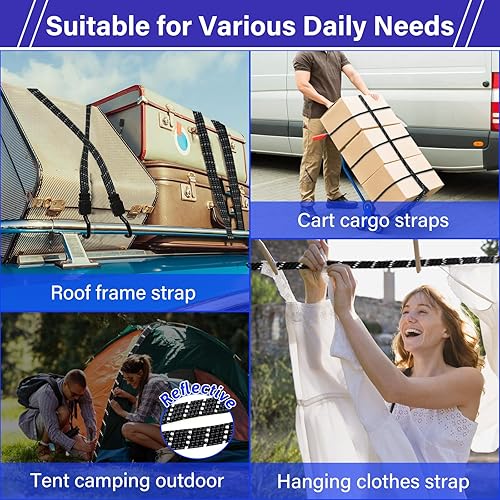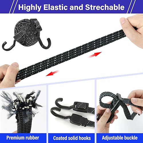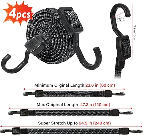 Corde Elastiche Con Gancio, 4Pcs 120Cm Lunghe Corde Bungee Cinghie Elastiche Per Impieghi Gravosi Riflettente Bungee Di Grado Industriale Per Fissare Teloni Bagagli Tende Biciclette Nero