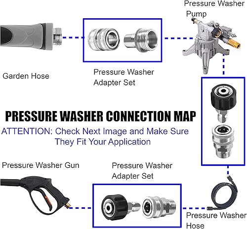 M MINGLE Set di adattatori per idropulitrice, kit di scollegamento rapido in acciaio inossidabile, girevole M22 a collegamento da 3/8', attacco da 3/4' a sgancio rapido, confezione da 8