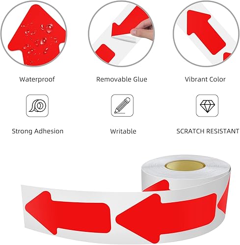 200 adesivi a forma di freccia, 7,6 x 15,2 cm, autoadesivi, resistenti alle intemperie, colore rosso fluorescente