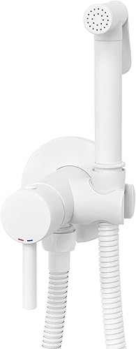LUNGO LOOP BIANCO RUBINETTO BIDET DA INCASSO Doccetta a Parete in Ottone Miscelatore Acqua Calda e Fredda con Doccetta per WC WC (Bianco)