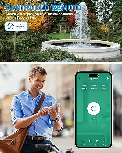 Presa Smart Esterna - Presa Smart WiFi Outdoor Presa Intelligente Alexa VeSync App WIFI Presa Intelligente WiFi Presa con Misura del Consumo Energetico, Controllo Vocale