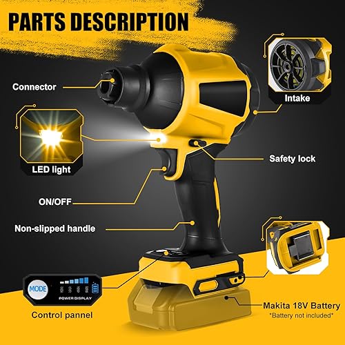 Ventola a batteria per Dewalt da 20 V, batteria per soffiatore foglie, supporta batteria Dewalt da 20 V, senza fili, per la cura del prato, bolle di foglie, pulizia di auto e angoli (senza batterie,