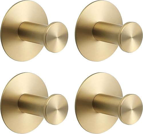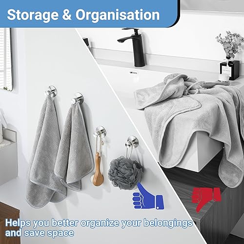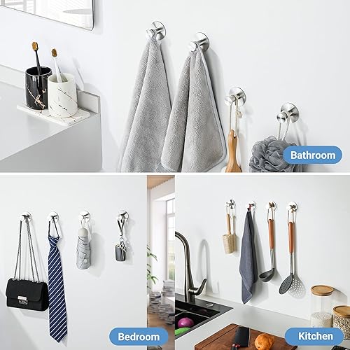 SAYAYO Ganci Adesivi Ganci Portasciugamani in Acciaio Inox Gancio Accappatoio Bagno Argento, Gancio Appendiabiti Autoadesivo Appendi Strofinacci Cucina, 4 Pezzi