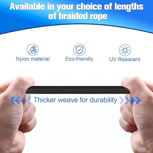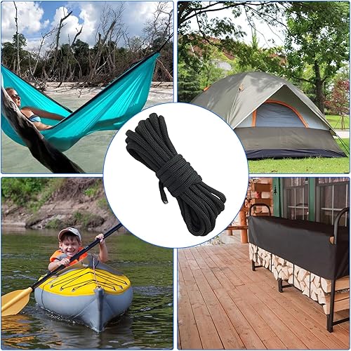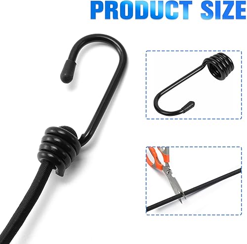 Corda in gomma, 10 m, colore nero, corda di espansione, 8 mm, corda di tensione con 4 ganci a spirale