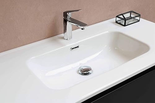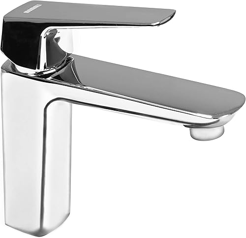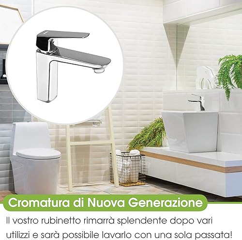 Miscelatore Bagno Monocomando per Lavabo, Bocca erogazione da 140 mm con scarico Click Clack, Cromato, Design Moderno, 100% Made in Italy, Flessibili Standard 3/8” (Lavabo Spartaco)