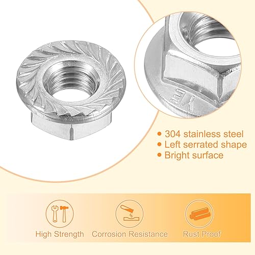 Flangia Mano Sinistra Dadi M8x1,25mm 304 Acciaio Inox Serrato Flangia Mano Sinistra Inverso Dadi per Assemblaggio e Fissaggio Argento 5pz