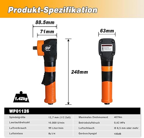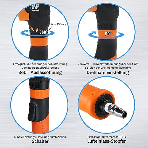 WORKPAD Avvitatore a impulsi pneumatico Twin Turbo, coppia di serraggio max. Coppia di allentamento 2000 Nm, attacco quadro 19 mm (3/4 di pollice), avvitatore a impulsi ad aria compressa.