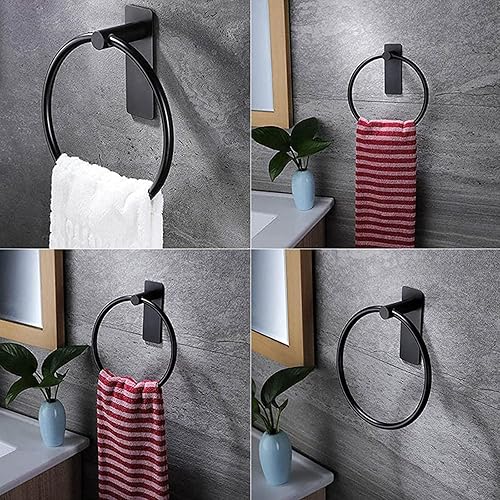 Anello Portasciugamani, Anello per Asciugamani Autoadesivo, Senza Foratura, Porta Salviette Parete Acciaio Inossidabile Anelli Portasciugamani, Utilizzabile in Bagno e Cucin (Nero)