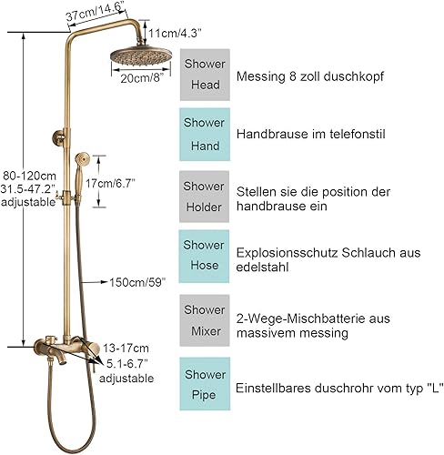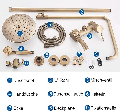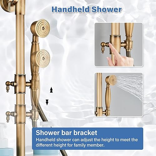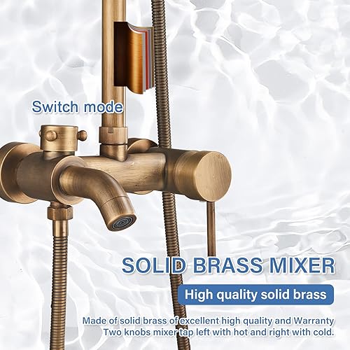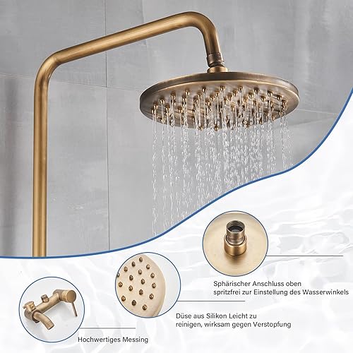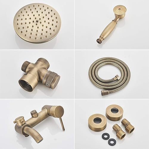 Set doccia completo in stile retrò, con rubinetteria e doccetta, in ottone anticato