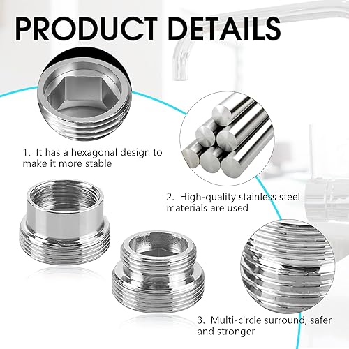 Set da 2 Adattatore per Rubinetto in Metallo, Connettore Filettatura Maschio per Rubinetti da Cucina e Acqua - Adattatori per Rubinetto Femmina - Versatilità 16-22 mm