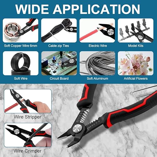 3 in 1 Pinza da Taglio Diagonale, Strumento spelafili pinza, Multifunzionale Pinza da Taglio Diagonale, Tronchesina per 10-20 AWG, Pinza Spelafili Crimpatrice, pinze elettricista.