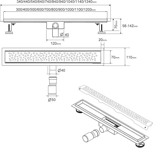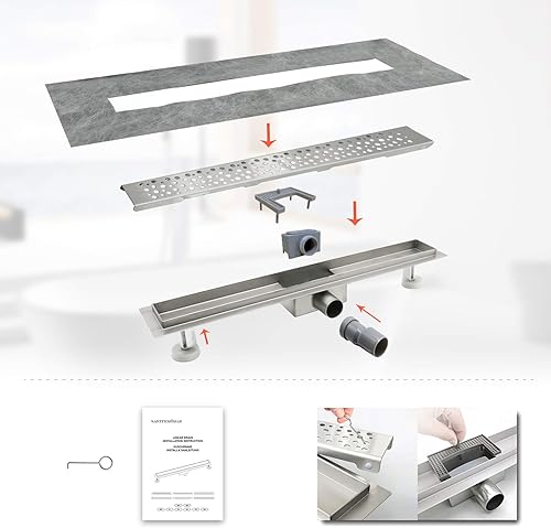 SaniteModar Canalina Scarico Doccia 70cm, Canaletta Doccia con Sifone e Filtro, Pannello a Bolle