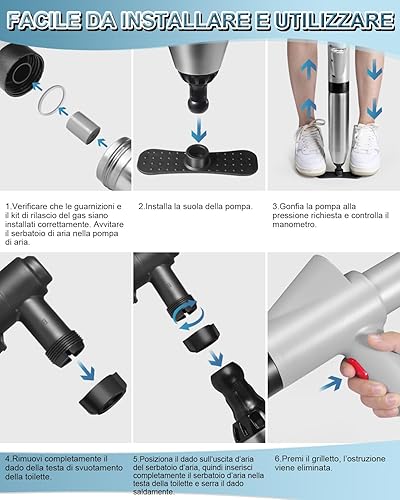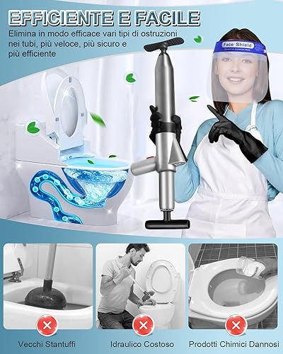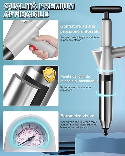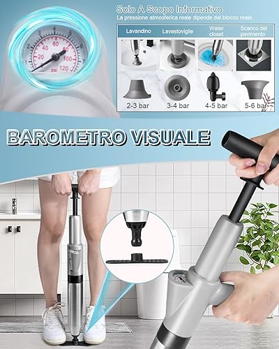 Pompa Stura Lavandini Scarichi a Pressione, Stura WC Stantuffo per WC con Barometro Visuale Sturalavandino ad Aria Compressa per Disintasare Bagno Cucina lavandino Scarico a Pavimento Vasca