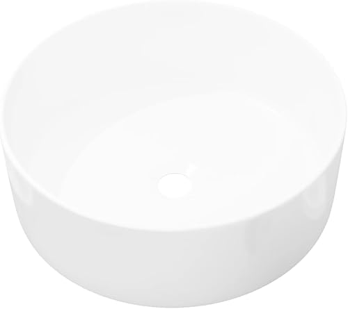 vidaXL Lavandino Tondo in Ceramica Bianca 40x15 cm da Bagno Lavabo Lavello