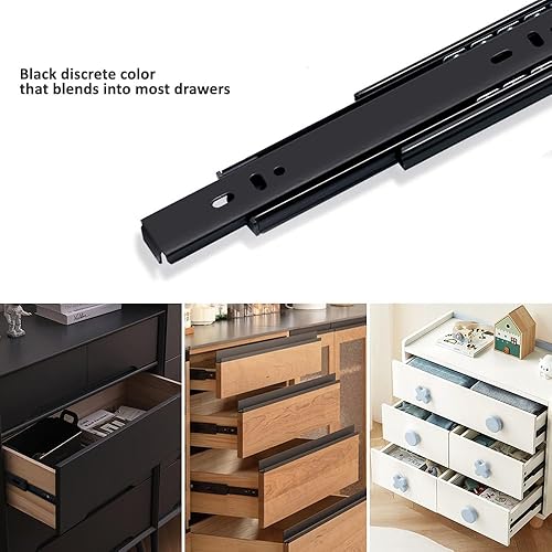2 paia Guide per Cassetti Soft Close, 350mm con Cuscinetti a Sfera, Montaggio Laterale, Metallo Nero