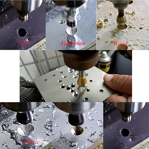 Fixinus Set di 4 punte per svasatura conica HSS, svasatura a 90° in titanio, per legno, metallo, ferro, plastica, alluminio
