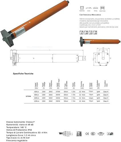 FP-XP59M-80/15 Motore Elettrico per Tapparella, Arancione