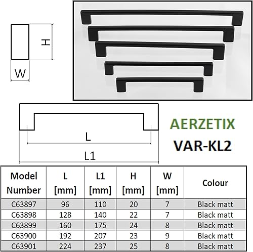 C63897 - Set di 2 maniglie per mobili interasse 96mm - porte armadio cassetto decorazione interno arredamento cucina soggiorno assemblaggio - in metallo - finitura nero opaco