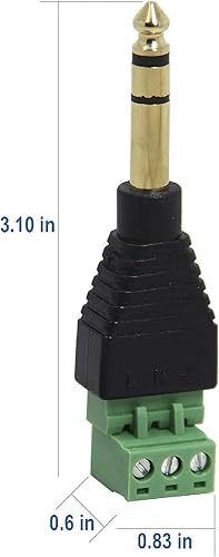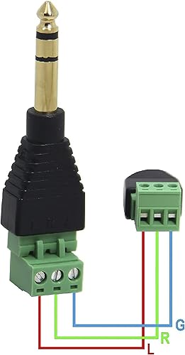 Adaptout 2x Morsettiera terminale morsetto Jack grosso 6,35mm maschio da 2 vie - connettore audio in metallo placcato oro marca francese
