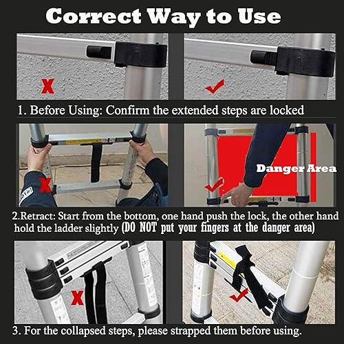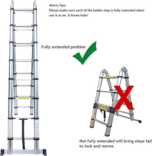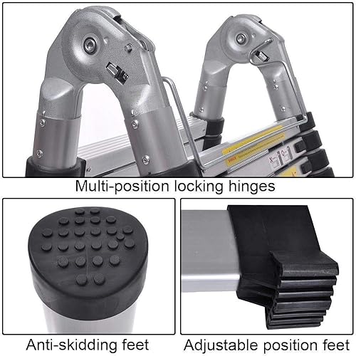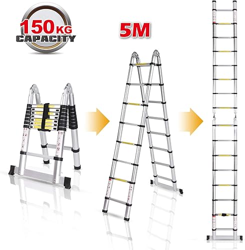 COOCHEER Scala Telescopica Pieghevole in Alluminio, 5m (2,5 + 2,5m), Portatile e Facile da Conservare, Carico Massimo 150kg, Ideale per Lavori in Altezza, Manutenzione Casa e Potatura Alberi
