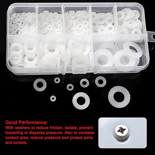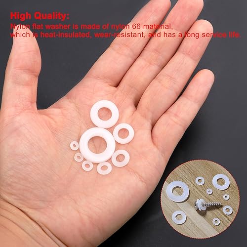 500 Pezzi M2 M2.5 M3 M4 M5 M6 M8 M10 Nylon Piatte Rondelle Assortimento Kit, Guarnizione in Nylon, Rondella in Plastica per Meccanica, Bianca