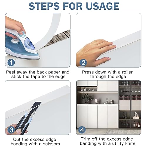 Canto autoadesivo, 18 mm x 12 m, canto melamina bianco, canto lan di lavoro sicuro senza stiratura, bordo canto bianco per mensole, pannelli di legno