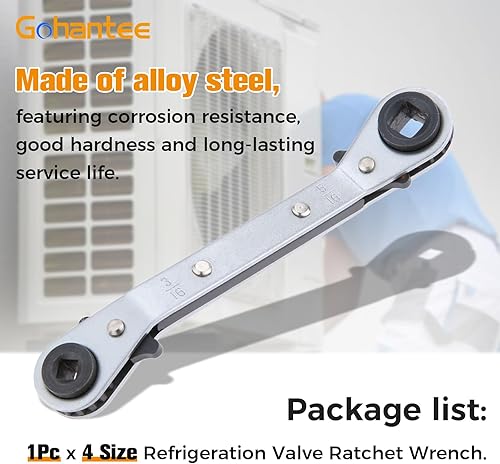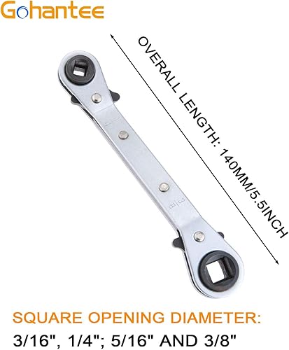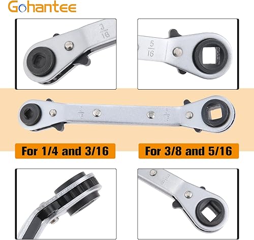 gohantee Chiave a cricchetto per refrigerazione, 4 diverse misure, 1/4 x 3/16 quadrata x 3/8 x 5/16, chiave a cricchetto per aria condizionata