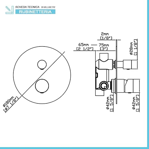 Miscelatore doccia incasso satinato con deviatore a due vie in acciaio inox, maniglia girevole e indicatori per l’acqua, GEMINI