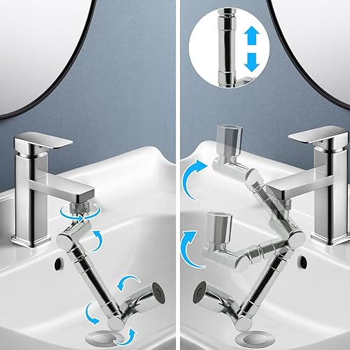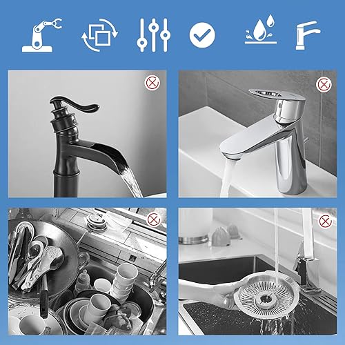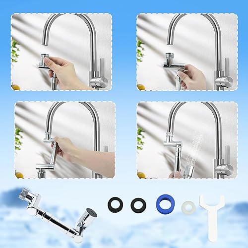 Braccio meccanico del rubinetto rotante a 360°, regolazione a due velocità, prevenzione schizzi di bolle, forte aumento della pressione, rubinetto universale, inclusi strumenti di smontaggio e