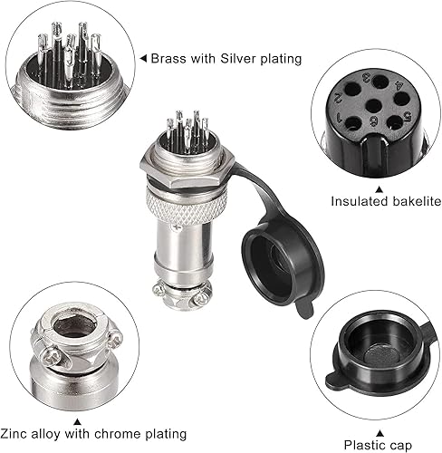 6Pcs GX16-6 Pin Aviazione Connettore Spina, 5A 12MM Maschio Femmina Plug GX16 Connettore Pannello Metallo Presa Spina, con Gomma Protettore Berretto e Phillips Cacciavite