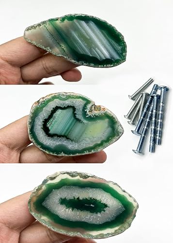 4 pomelli agata verde naturale, pomelli pietra cucina geode, pomelli marmo cassetti per armadietti, pomelli per cassettiera, pomelli mobili cucina con viti (Gemme verdi)
