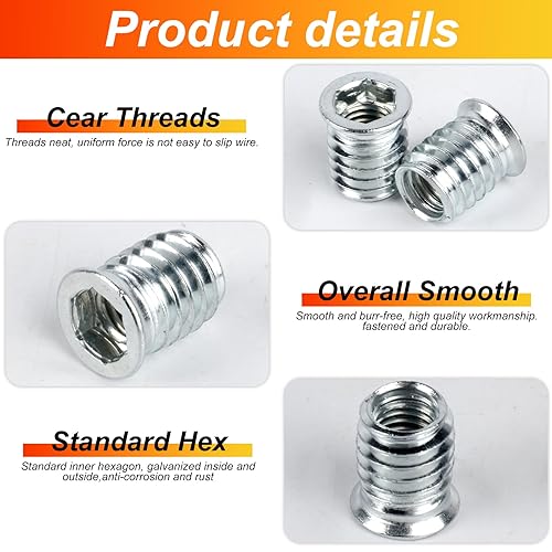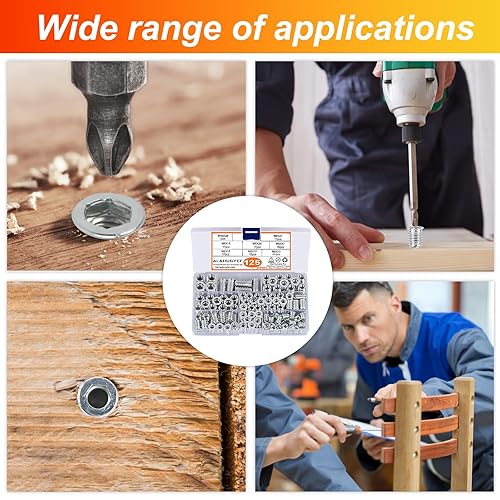 125 Pz Inserti Filettati Dado, M5 M6 M8 M10 Rivetti Filettati, Boccole Filettate per Legno, Bussole Filettate, Dadi Inserto di Fissaggio Viti a Esagono Incassato Inserti Filettati per Mobili Legno