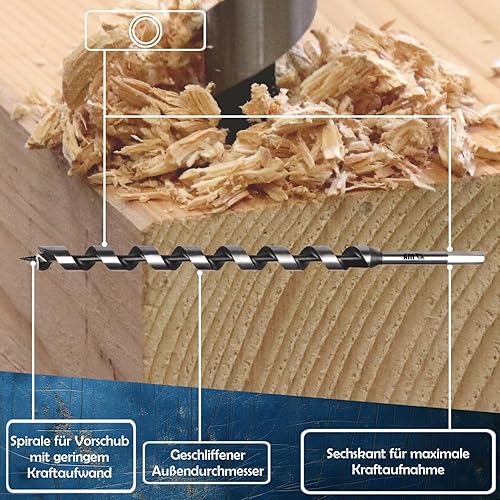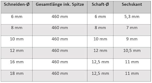 Set di 6 punte per trapano a serpente Ø6-18 x 460 mm, punte per legno lunghe