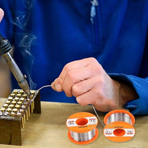 4 Pezzi Filo Stagno Saldatura 50g Filo Saldatura Nucleo Colofonia con Treccia Dissaldante Adatto per Lavori di Saldatura DIY Riparazioni Elettriche (0,6/0,8/1 mm)