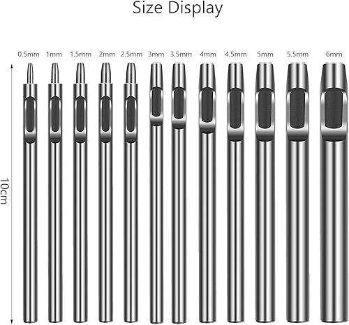 LAITER 12 PCS Punzoni per Pelle Cuoio Fori Vuoti Rotondi Acciaio al Carbonio Pelle Strumento Lavorazione Craft Punzoni per Pelle Cinturino per Orologio Tela Occhiello
