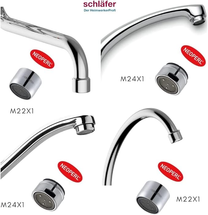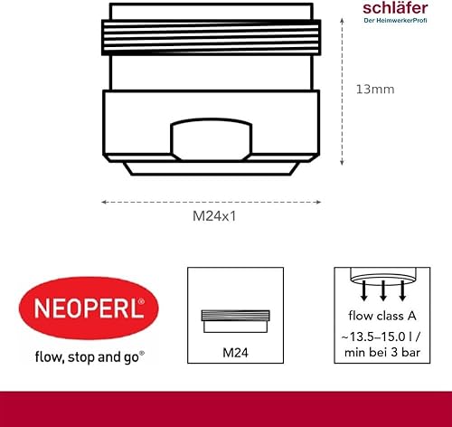 Schläfer 100016 | Aeratore M24 Universale Anticalcare per Rubinetto, Filetto Esterno M24X1 Rompigetto Perlator, Classe A 13.5 lit/min. compatibile con NEOPERL Risparmio Acqua. Confezione 10 PZ