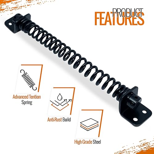 Chiudiporta a molla per cancello in legno, con rivestimento in polvere nera, resistente agli agenti atmosferici, ideale per uso esterno