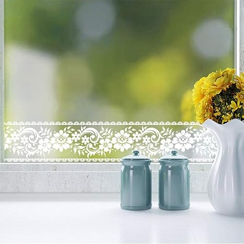 Bordo in carta da parati trasparente in pizzo bianco, Bordo impermeabile autoadesivo, per vetrina del negozio Porta in vetro Piastrella per bagno Specchio Adesivo decorativo, 10x1000 cm (pizzo 01)