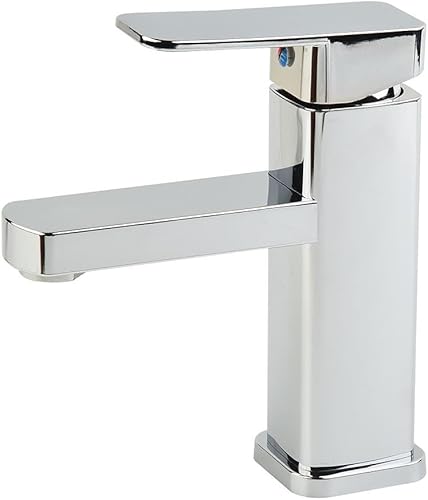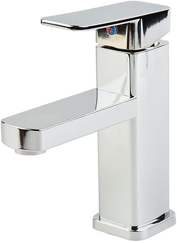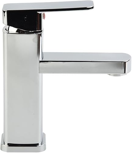 ZMdooreasy Rubinetto moderno per lavabo quadrato, miscelatore monocomando rubinetto del lavandino del bagno controllo dell'acqua calda fredda acciaio inossidabile finitura argento 170 mm design a