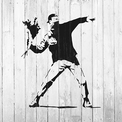 Stencil Banksy, motivo lanciatore di fiori di rabbia, per pittura aerografata, decorazione artistica da parete fai da te, in Mylar da 7,5 mm, riutilizzabile, in plastica Mylar