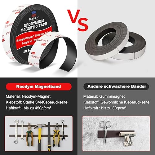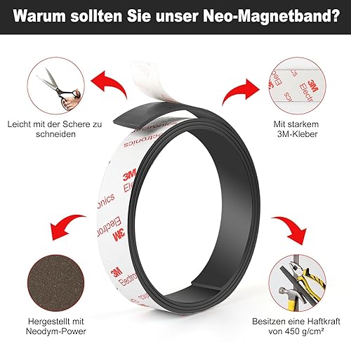 Nastro magnetico al neodimio autoadesivo forte, extra forte con forte adesivo 3M (15 mm x 1 m di lunghezza), striscia magnetica autoadesiva forte, perfetta per progetti artistici, lavagne